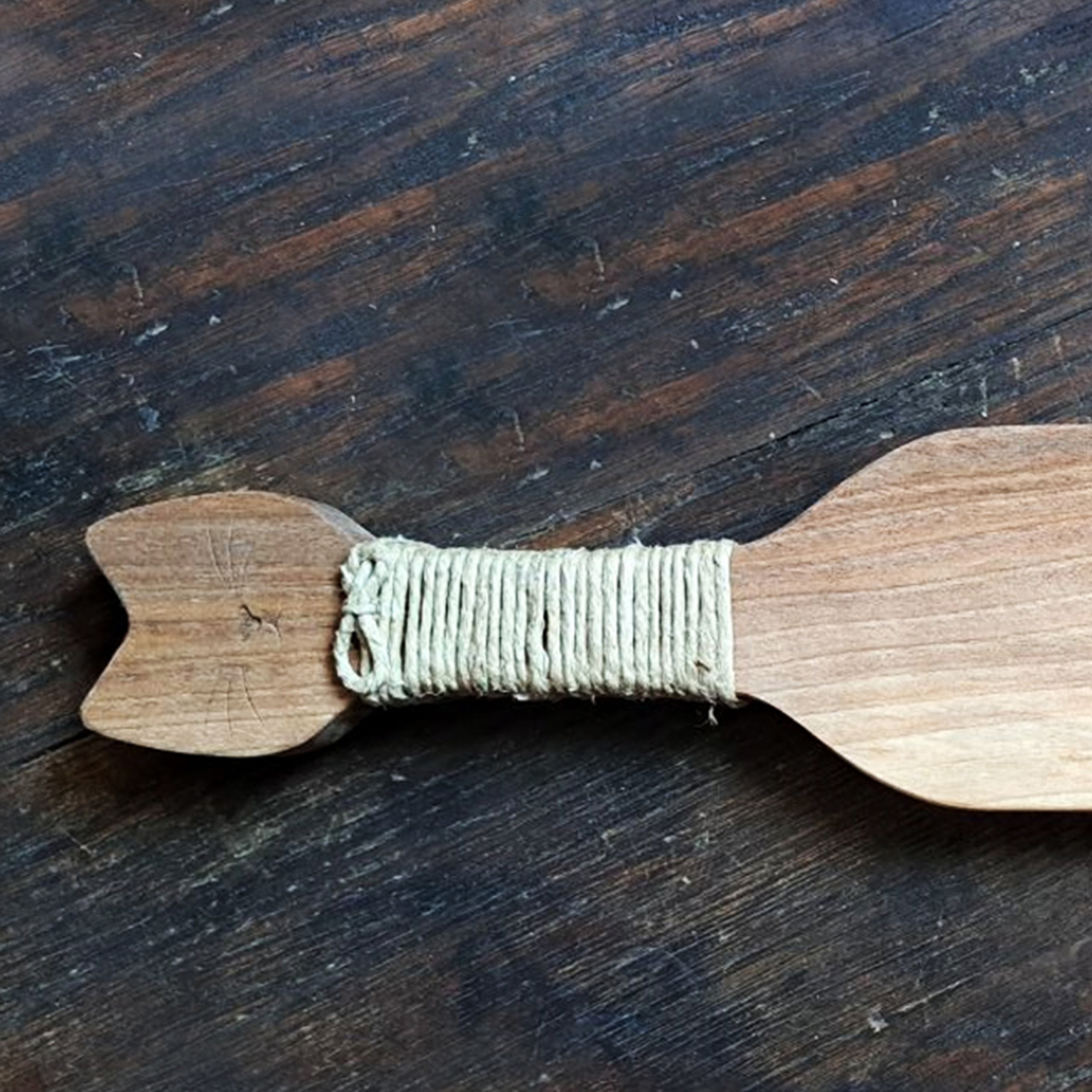 Deska za rezanje – dolgin, je namenjena rezanju in postrežbi. Ročaj je ovit z naravno vrvico – motvozom. Konec ročaja pa krasi stilizirana podoba mačke. Deska je premazana z naravnimi olji, ki so primerni za stik z živili.